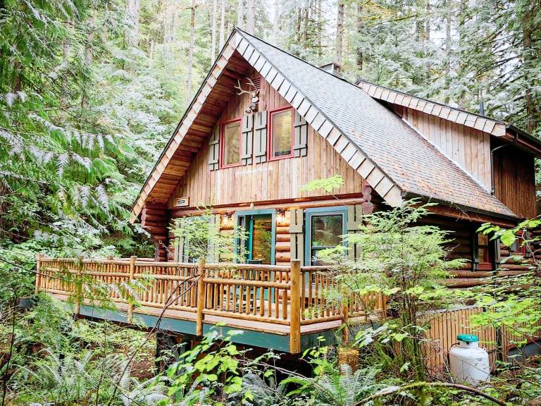 Innenbereich:Willkommen in The Mountain Place Log Cabin - ein echtes Blockhaus in einer ruhigen Sackgasse in der Snowline Gemeinschaft am Tor zum Mt. Baker-Snoqualmie National Forest eingebettet. Dies ... mehr »